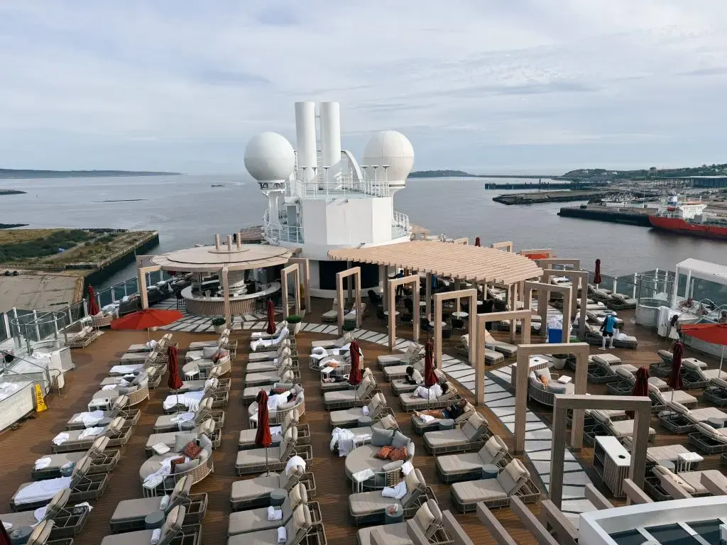 Câu lạc bộ Bãi biển Vibe ở phía sau tàu có tính phí. Do đó, nó chỉ dành cho những người sẵn sàng trả tiền cho không gian không có trẻ em.