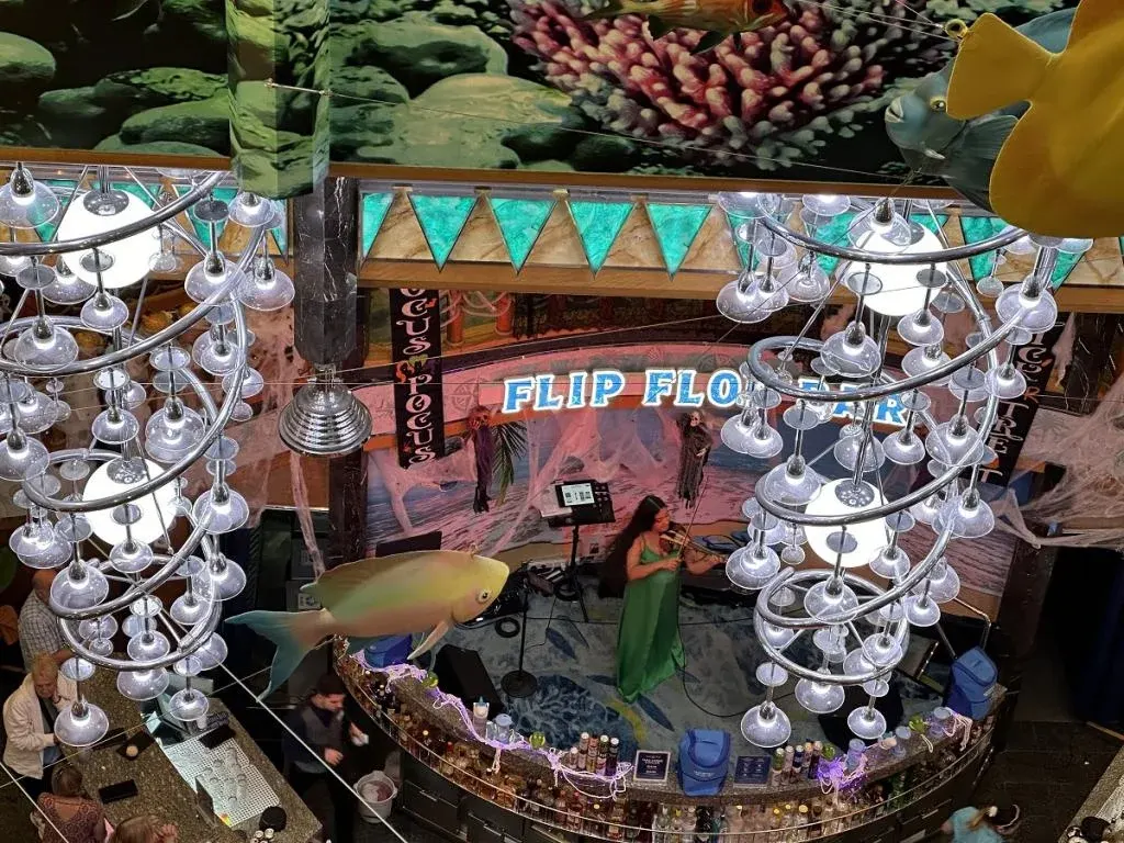Tuy nhiên, trên Islander, Flip-Flop Atrium là một trong những không gian biểu diễn nhạc sống chính trên tàu, nằm ngay cạnh quầy dịch vụ khách hàng và quầy du ngoạn trên bờ, chỉ cách khu vực lễ tân một tầng.