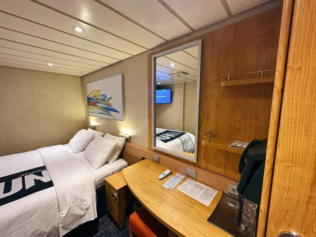 Chắc chắn nó không giống như phòng sáng sủa và hiện đại của tôi trên tàu Carnival Celebration, nhưng nhìn bằng mắt thường, nó không có vẻ tồi tàn hay bị bỏ bê — ít nhất là lúc đầu.