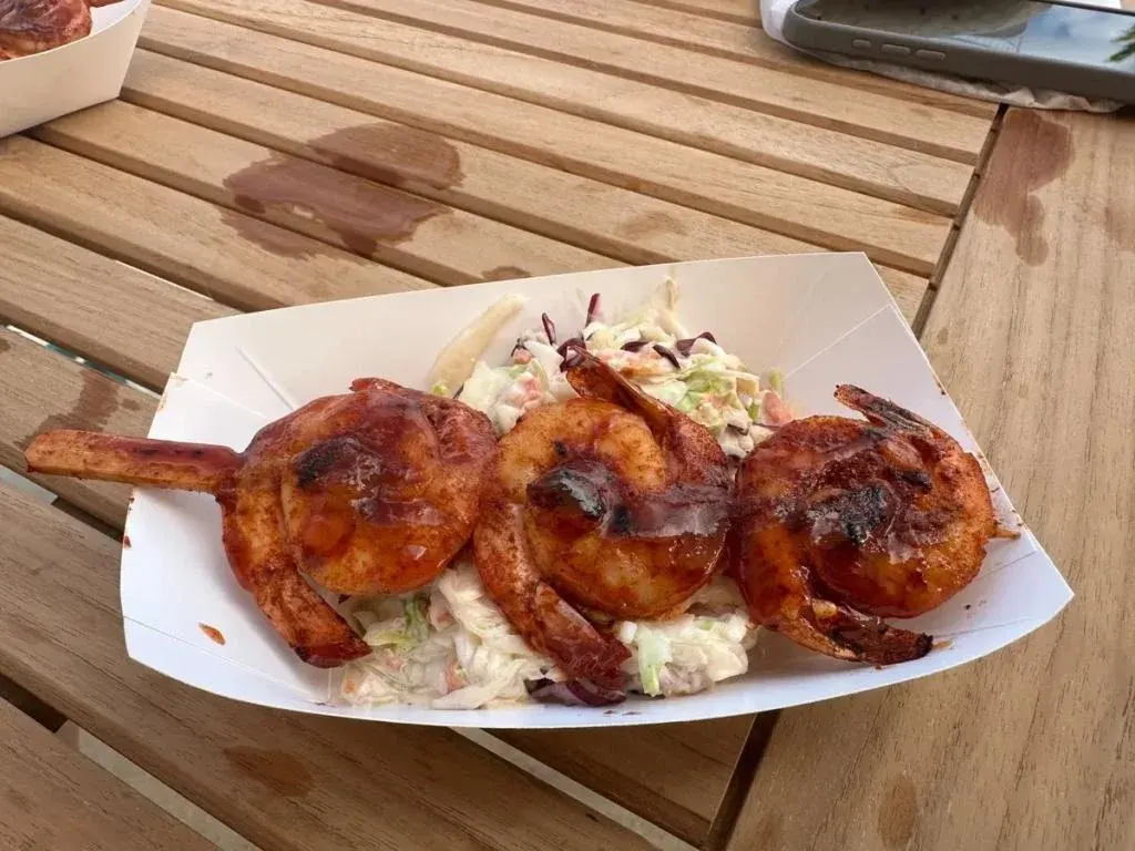 Một trong những món ăn tôi thích nhất là xiên tôm quay. Sáu con tôm được tẩm ướp gia vị và nướng được phục vụ trên một lớp salad bắp cải trộn dứa. Tôi cũng rất thích món mì ống phô mai kiểu Bahamas và kem dứa từ máy làm kem mềm. Tuy nhiên, bánh mì kẹp cua với sốt crack (một hỗn hợp tương cà/mayonnaise hơi cay) thậm chí còn ngon hơn. Tôi đang nói về chuyện cũ rồi, nhưng tôi chưa từng ăn cua ngon như thế kể từ khi nhà hàng Maas Bros. đóng cửa.