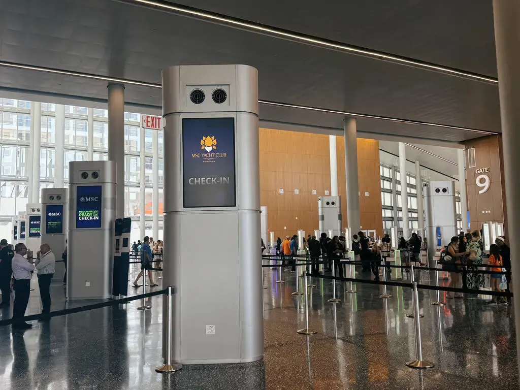Trải nghiệm bắt đầu ngay khi chúng tôi đến Cảng Miami. Chúng tôi được yêu cầu đến lều Yacht Club, nơi hành lý của chúng tôi được gắn thẻ ngay lập tức trước khi được một người hộ tống riêng đưa vào nhà ga để nhâm nhi sâm panh trong khu vực lên tàu riêng.